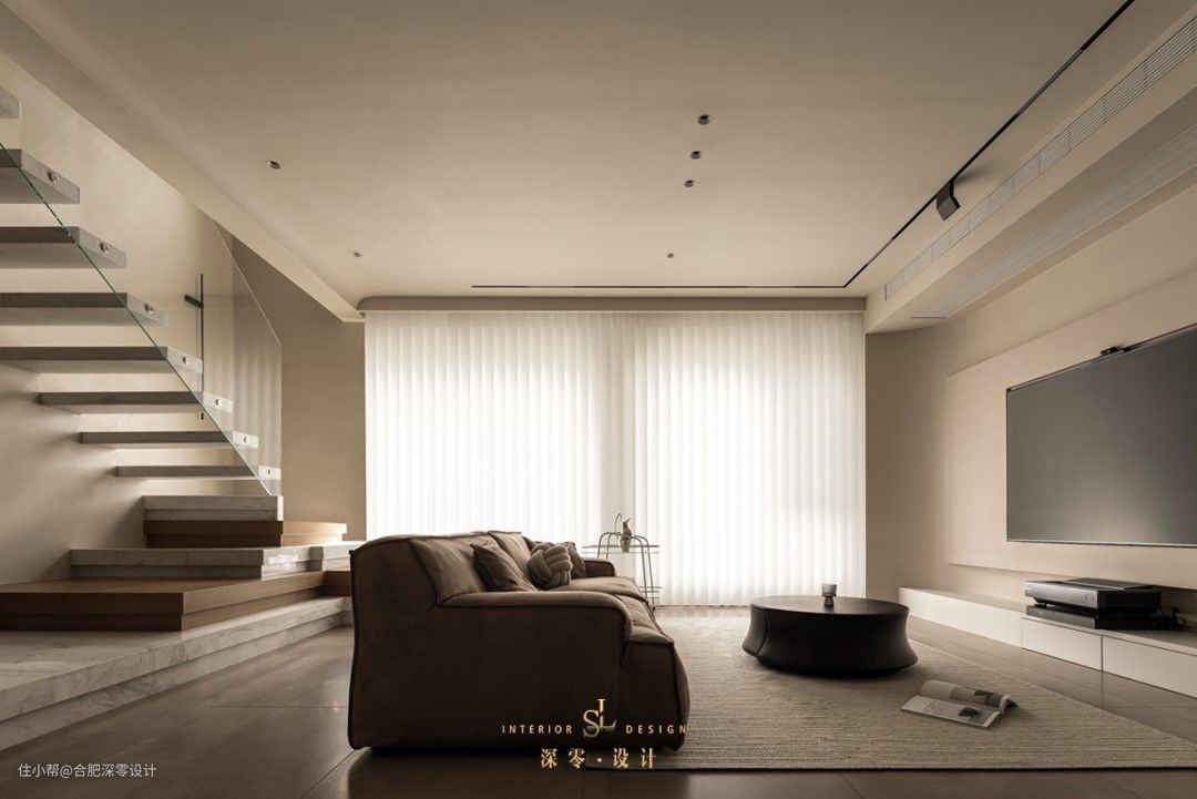 这可是一个大手笔,沙发后留空给楼梯做让步,要么本身就有,要么就是楼梯移位后的结果,而这户人家就是后者,选的还是悬浮楼梯,轻便感自然不同多说,虽说在楼梯样式上各有差异,但具体要量力而行。