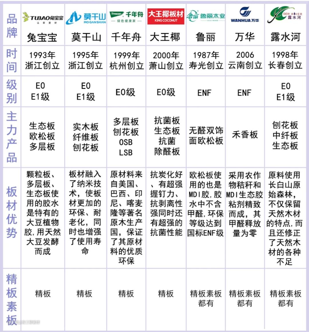 万华禾香板、千山多层板、露水河、兔宝宝、大亚、宁丰