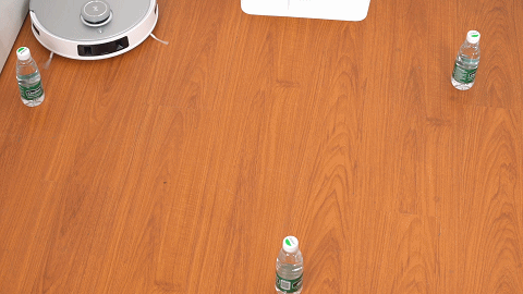 科沃斯T20 PRO,能识别出轨迹上的三个水瓶,轻松避开且没有和水瓶发生碰撞。