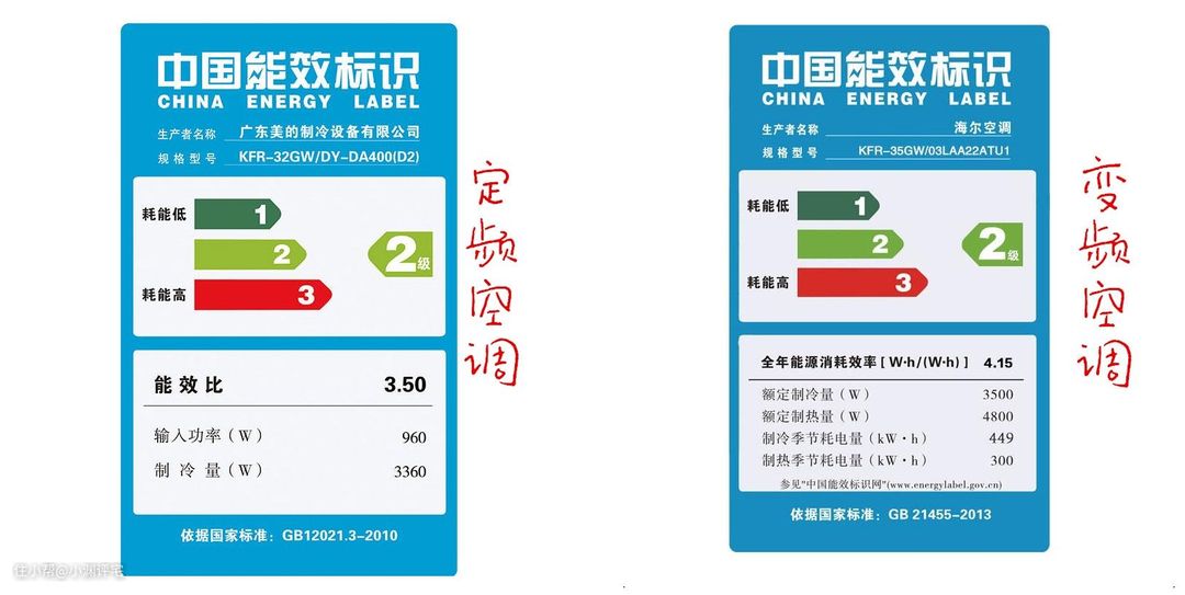定频空调的能效等级和变频空调的能效等级标准是不同的。