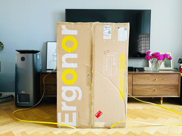 跟之前用过的几款椅子的包装相比,保友优旗舰2代的包装箱体积是真大,包装箱上侧面有方便搬运的拉手设计,正反两面不但有运输放置提醒,还有拆箱位置提醒。
