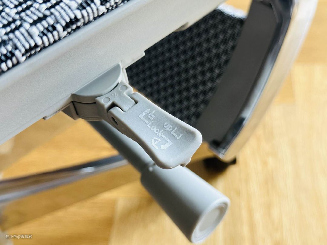 保友优旗舰W 2的椅背锁定、坐深调节、座高调节都是通过一个单杆控制器来调节的,这也是保友人体工学椅的特色,要比很多品牌分开式控制要方便的多,不过刚入手的时候还需要多学习适应。