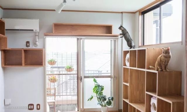 当然猫咪是需要爬高又要磨爪子的,在阳台搭好猫爬架,或者错层安置几块隔板,才算是一个猫咪乐园的基本建设。