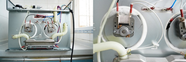 华凌HD800的电路板在顶部,其所有配置都标得很清楚。上下都是内外双加热管,双风机,风机加热管,底部辅助加热,冷凝风机,每个装置都有对应的线路,所有配置都是实实在在的。