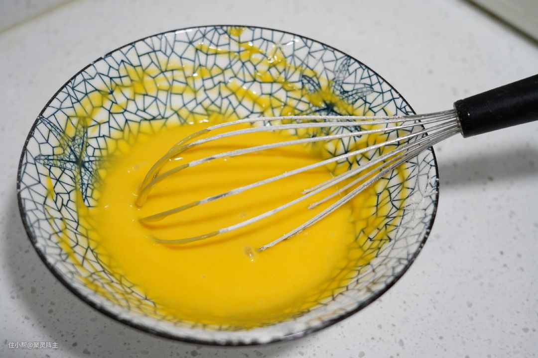 然后将鸡蛋打散,放入大概相同体积的温开水,加入适量食盐,搅拌均匀,再用厨房纸吸去表面气泡,准备蒸制。