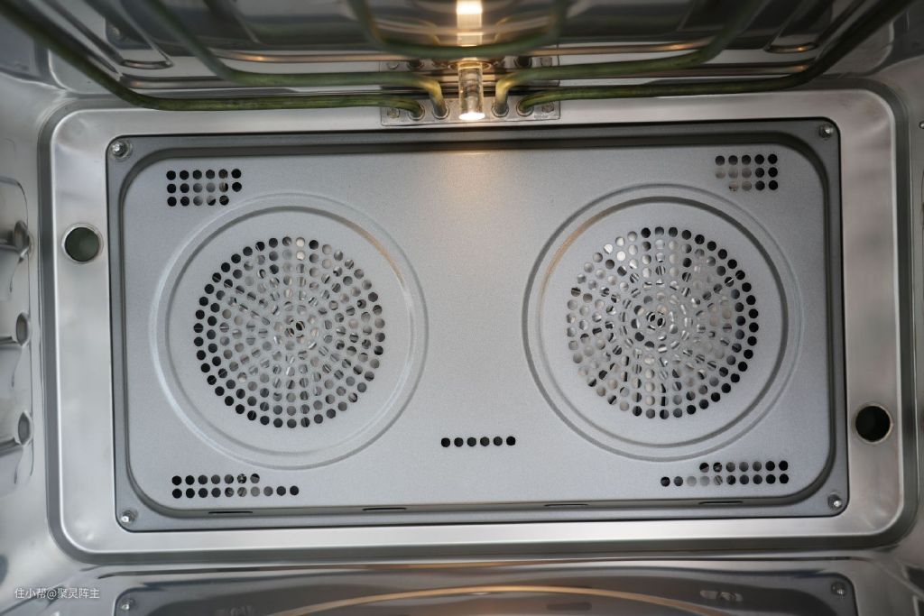 华凌HD800的双风炉背板采用的是陶瓷油背板材质,这种材质兼顾了陶瓷和不锈钢的双重优势,既容易清洁,又结实耐用,现在很多高端蒸烤箱都采用这种材质。