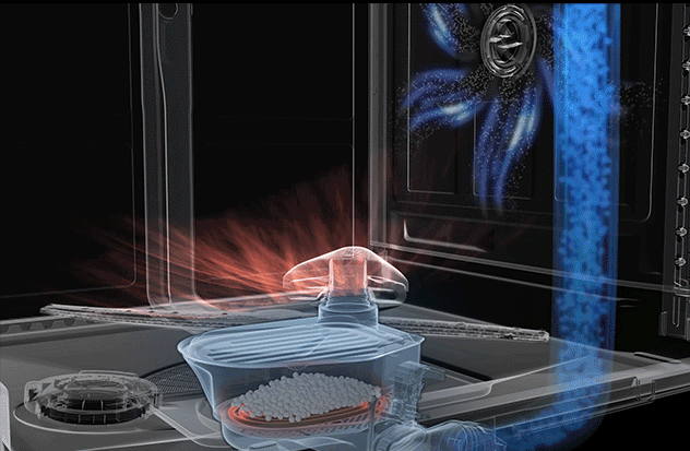自动开门烘干是普通烘干的升级版。当内腔达到温湿度平衡后,洗碗机自动打开门体,通过内外部之间的温差形成空气循环对流。自动开门烘干技术为一些高端洗碗机采用,也是目前效率最高、效果最佳的烘干方式。