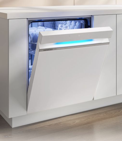 这款西门子洗碗机的德式全嵌入式黑/白色面板,富有科技美感,并配有人性化的内嵌把手设计。