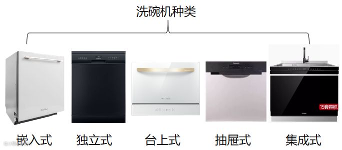 洗碗机的结构型式主要分为台上式、嵌入式和台嵌两用、独嵌两用式,还有这两年新兴的集成式以及抽屉式,其中颜值比较高的是台上式、独嵌两用以及抽屉式。