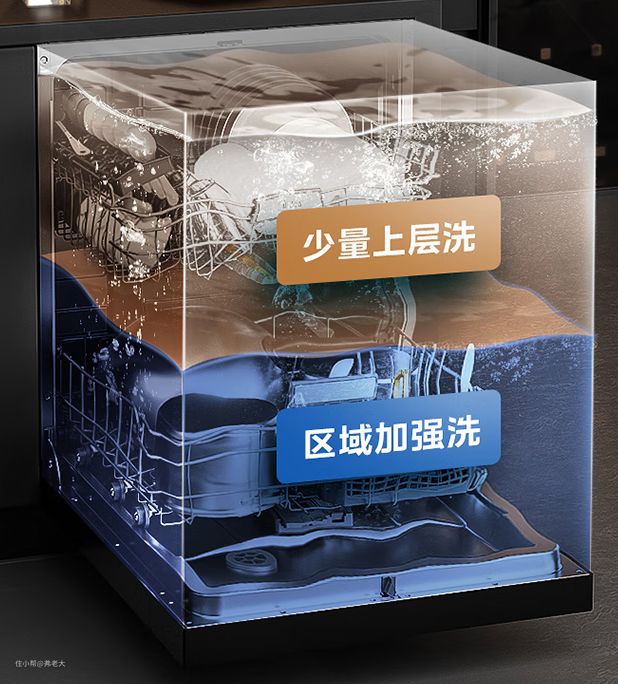 在6+5洗涤程序中,私以为最实用的是省心的一键智能洗,由洗碗机自动匹配最合适的程序。当然,分层洗、强劲洗同样能分别满足生活中少量餐具或重油污锅具的个性化需求。