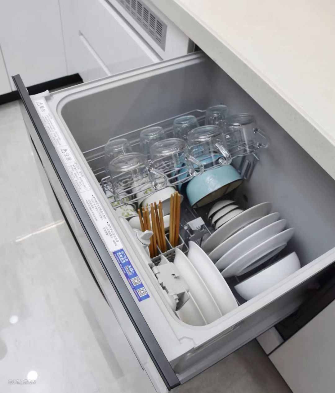 烘干功能方面,热风双风道和自动开门烘干双管齐下,使内腔和餐具快速干燥、快速排出水汽,拒绝湿淋淋的餐具滋生细菌异味。