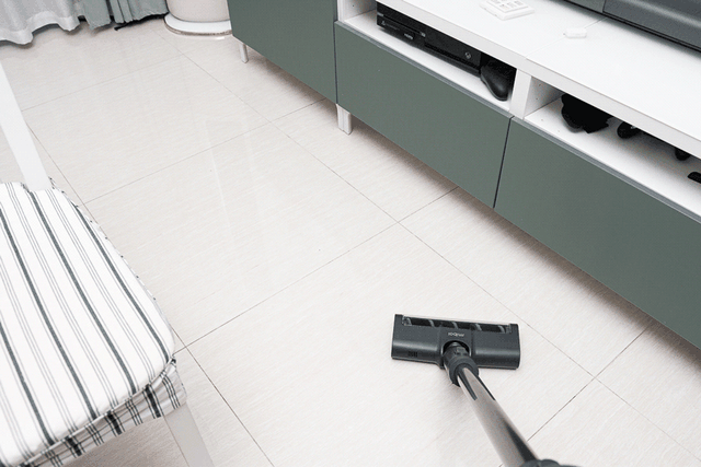 低矮的电视柜底部一直是我家的清洁死角,不管是洗地机还是扫拖机器人都下不去。这次利用米博 Q7的电动吸尘刷头,终于可以打扫到了,空间更大的床底也不在话下。