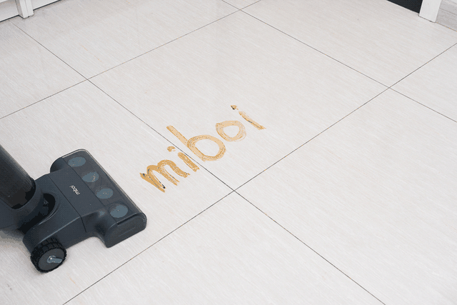 很多传统的洗地机和吸尘器由于没有贴边设计,边界缝隙的污渍留无法彻底清洁。下面看下米博Q7的使用表现,在两个相邻的夹角测试,吸拖后都没有留下污渍,边角的清洁不会留下死角。