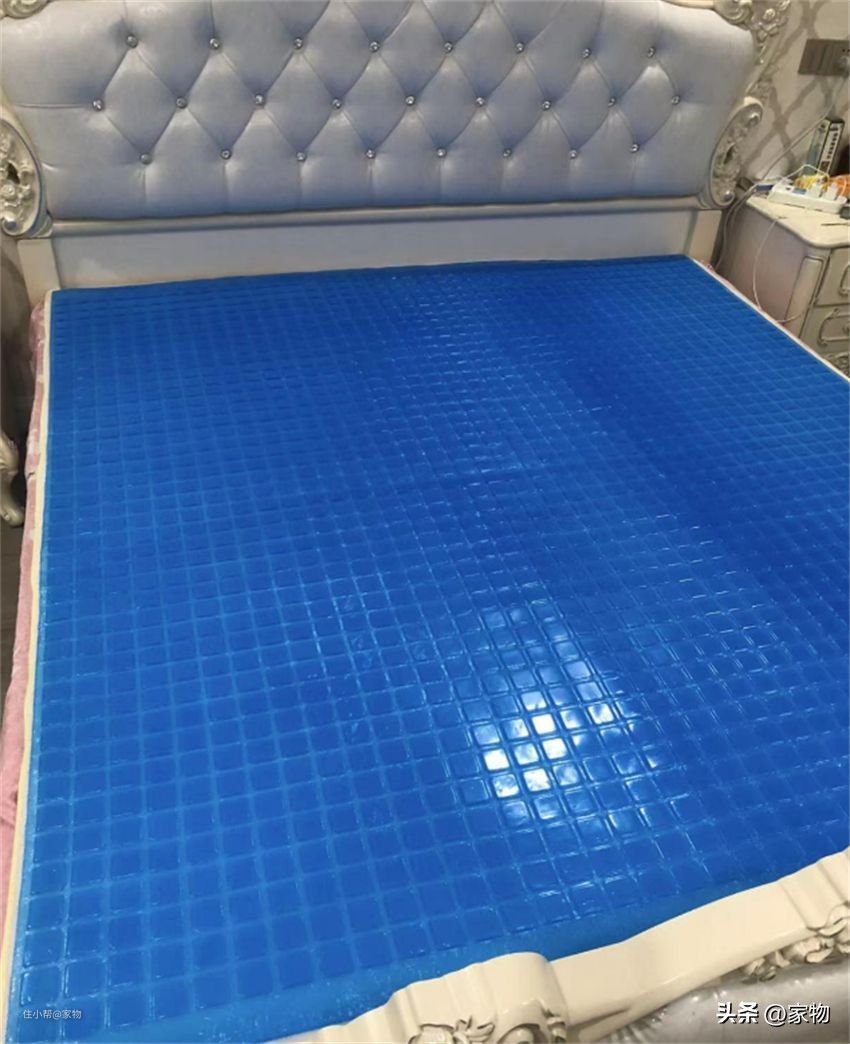 低配版“凝胶床垫”,外层是PVC布,内层用高分子凝胶与水组合填充,有一定的弹力,摸上去凉凉的,确实能起到良好的降温效果,但这种凝胶透气性差,用时间久了身上闷热,一旦反而会觉得不舒服。