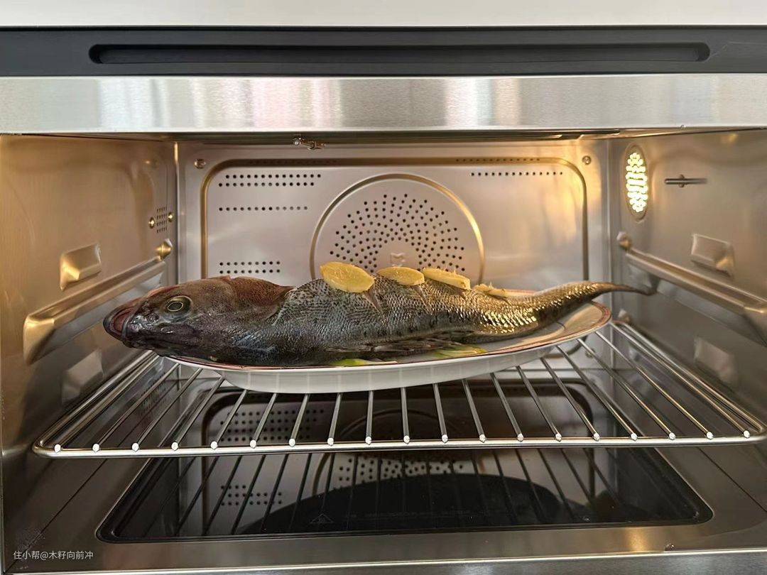 但自从有了微蒸烤一体机,我不仅实现了蒸鱼自由,更是实现了“整”鱼自由。我用的米家智能微蒸烤炸一体机容量有27L,我这条1斤半的鲈鱼放进去完全没有问题。