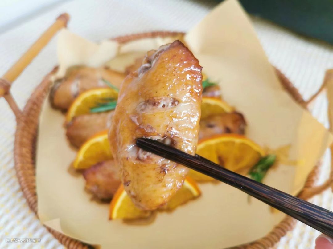 除了清蒸鱼外,我还做了橙香鸡翅,这道菜是用嫩烤模式做的。