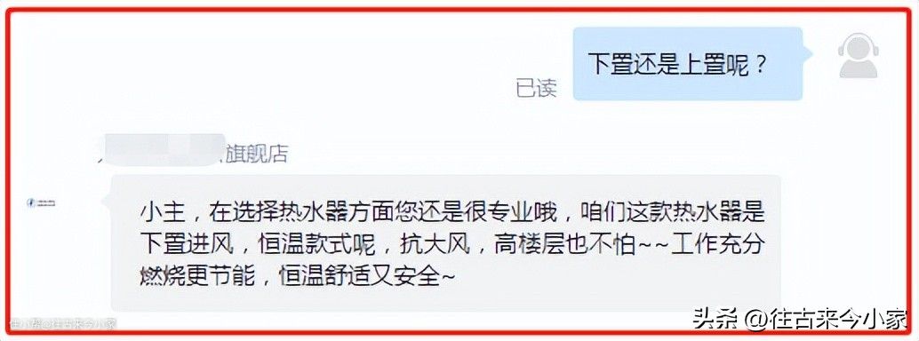 关于下置风机,官方客服也有解释:恒温、抗大风、工作充分燃烧节能等。