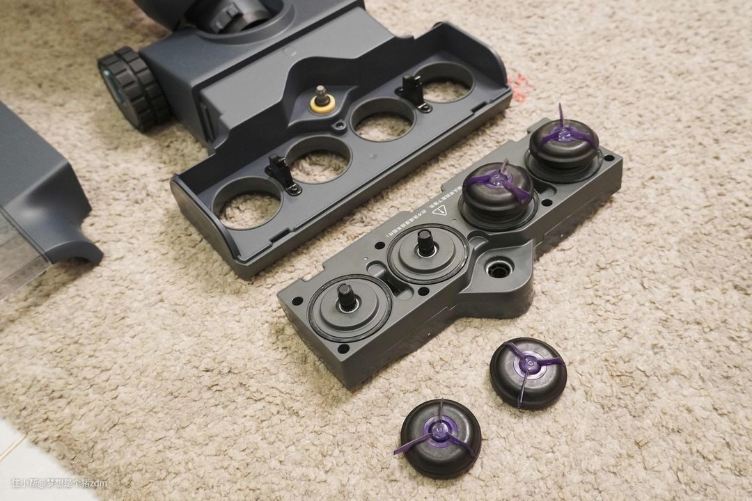 每一个地刷都可以单独取下,因为采用的是PVC材质,这种地刷可以做到经久耐用,完全不会像绒毛滚刷那样,用上三四个月就需要更换。根据这款洗地机官方的介绍,这种PVC地刷的使用寿命约为2.5年,并且目前还提供终身免费更换服务,直接包邮到家,确实非常贴心。