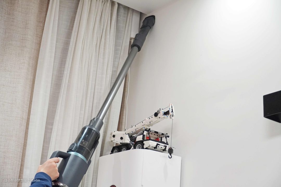 将电机主机从洗地机上拆下后,和吸尘器配件组合在一起,就摇身一变变成了一套具有13000Pa大吸力的吸尘器。