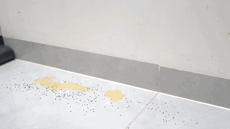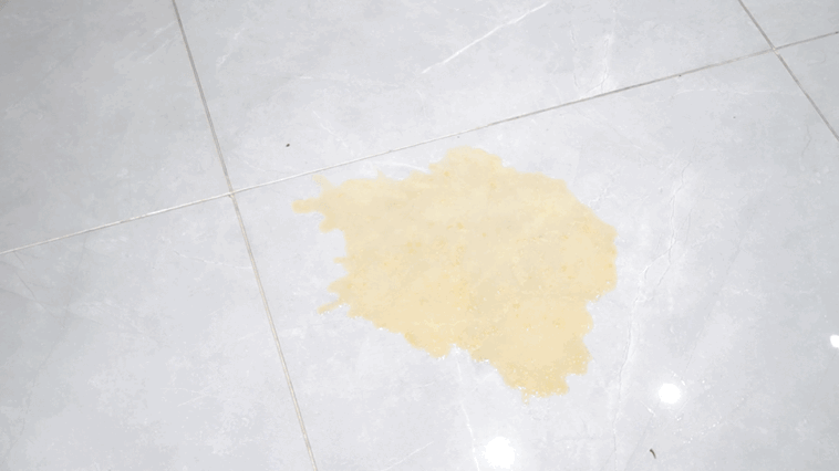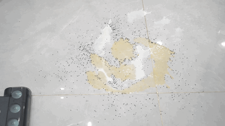 更粘稠更难清理的鸡蛋液,如果用普通的拖把清理简直就是噩梦,而且就算清理干净后也会留下很明显的腥味,但是用米博无滚布洗地机Q7全屋款来清理,同样能做到推拉之间干脆利落的被清理得干干净净,并且房间里完全不会残留有鸡蛋的腥味。