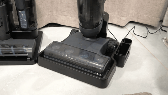 因为没有使用绒布滚刷,所以米博无滚布洗地机Q7全屋款在自清洁完成后,并不需要热风烘干,仅利用离心力将地刷上的水渍甩干即可,这一方面降低了耗电量,同时也避免了因为滚刷没有彻底烘干而产生异味和滋生细菌的风险。