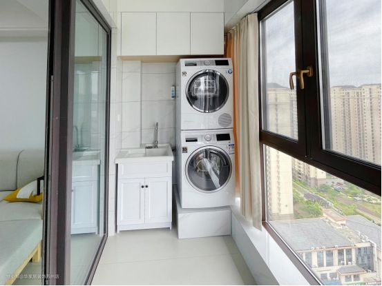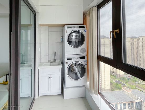 - 将洗衣机烘干机内嵌其中,可以放一些洗衣液、吸尘器等生活用品,生活更加舒适。
