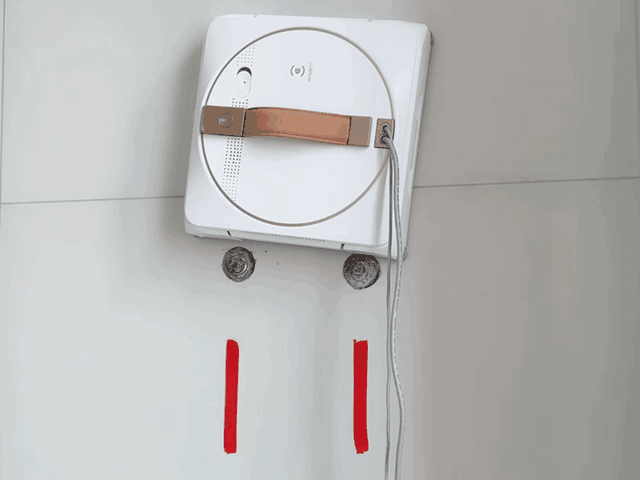 当你把它放到脏窗户(或者其他它能够攀爬的立面)上时,科沃斯W1S Pro就会牢牢吸附在表面上,然后双边交叉式自动喷水,喷出的水溶解污渍,尤其是干涸在表面的泥浆、油污等,都能被溶解软化(顺便说下科沃斯W1S Pro是可以添加清洁液的,所以去污能力更强)。 之后它就会按照智能路径规划按照“弓”字形来对窗户进行擦洗。