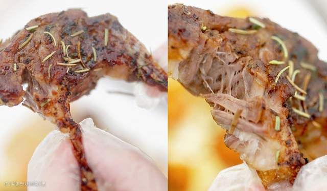 撕开内里,是外焦里嫩的口感,焦香的外皮+丰盈的肉汁,吃起来香而不腻。
