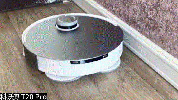 另外科沃斯T20 Pro还新增加了边角深度清洁功能,启动后机器在贴近墙壁和家具边缘时,会转动机身,一扭一扭地擦。这样拖布与墙面紧密贴合,很大程度上解决了圆形机器在清扫墙角边缘位置时容易留下“死角”的痛点。