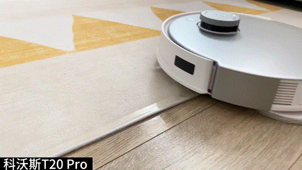 ▼科沃斯T20 Pro可自动升降拖布9mm,是目前最高升降距离。我用薄地毯和厚地毯分别测试了一下,表现还不错,识别到地毯后,都能迅速抬起拖布支架,在地毯上只扫不拖。