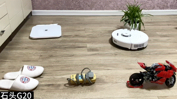 ▲测试四:行进过程中突如其来的障碍物,科沃斯T20Pro反应更灵敏,石头G20撞上后,也可以转向避让。
