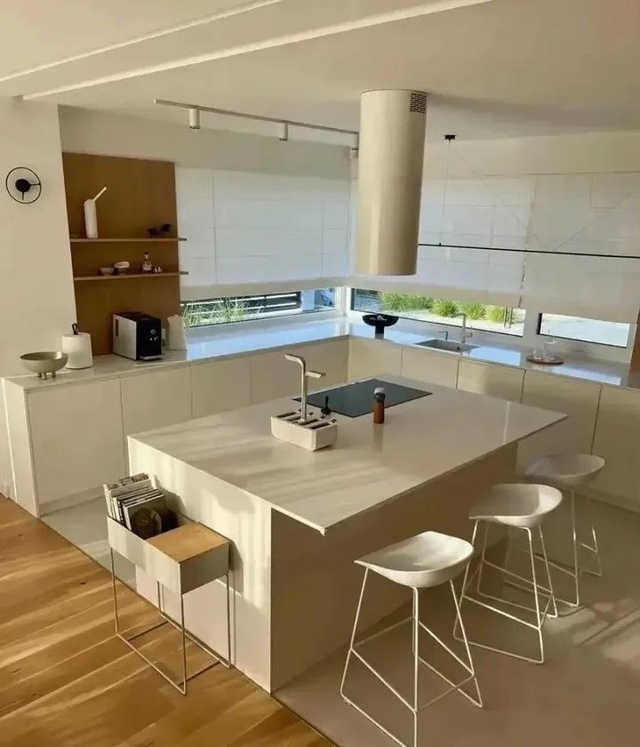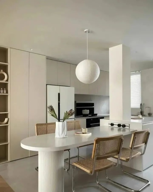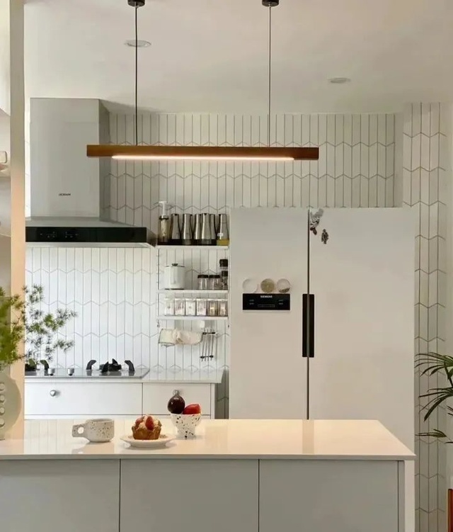 很多人觉得开放式的厨房可以与房子的整体搭配相呼应,增加美观,而岛台的设置则能更好的弥补了再单独布置一个用餐区,做完美食直接端在岛台上用餐,省事又便利餐后碗筷的清洗。