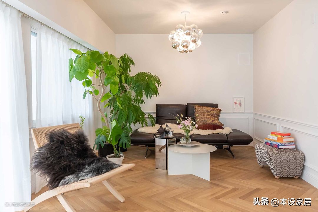 后来,女屋主又买了两棵高大的绿植,给空间注入一股活力,欣欣向荣的景色,看着就好治愈。