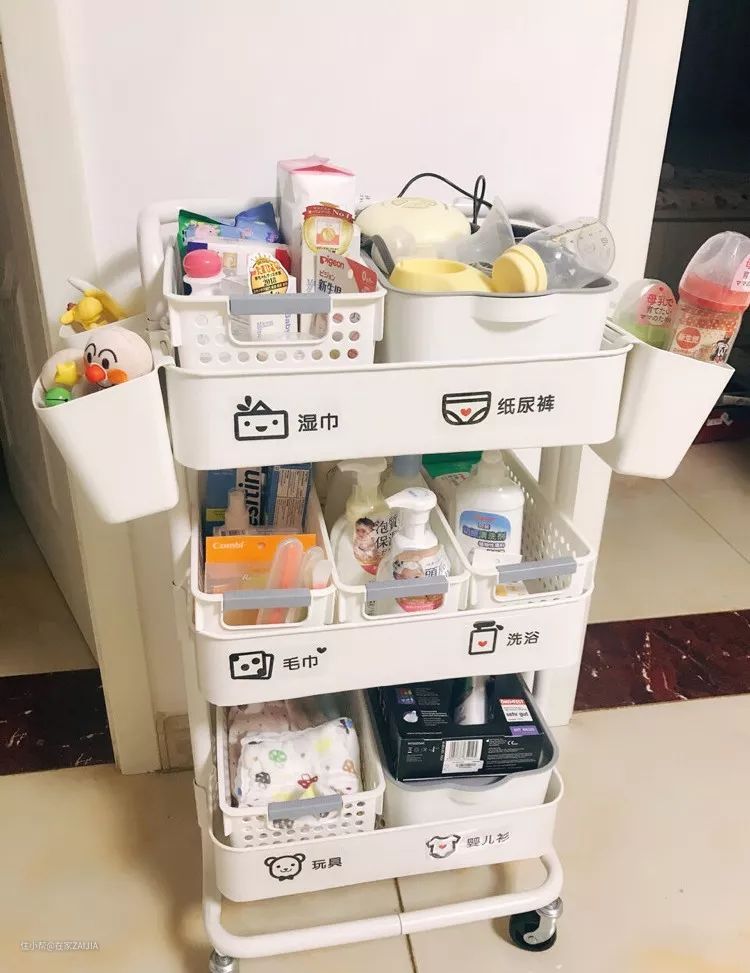 有了孩子之后的家庭,简直突破了收纳的极限。奶粉尿布玩具奶瓶等等各种物品都需要收纳。如果家里的收纳空间不够,就可以用小推车作为补充收纳。