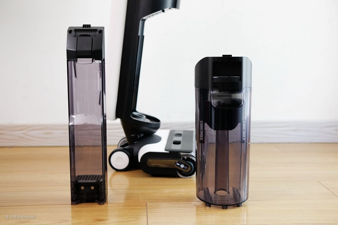清水箱容积800ml,污水箱容积720ml,蓄水量足够支持我家里130平左右的清洁。拖完一遍清水箱耗水和污水箱都还有余量,而且在清扫过程中清水箱和污水箱一减一增的容量比例近似,配比很合适。