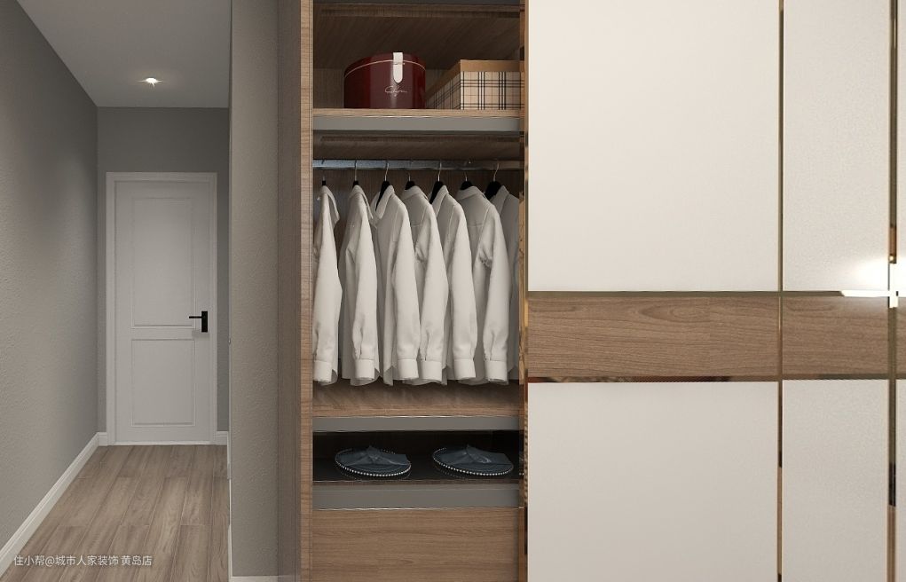同时,加上衣柜和床的线条效果,整个空间带给人的感觉就是清爽,不拥挤,小面积的卧室也能享受到午后的悠闲时光。