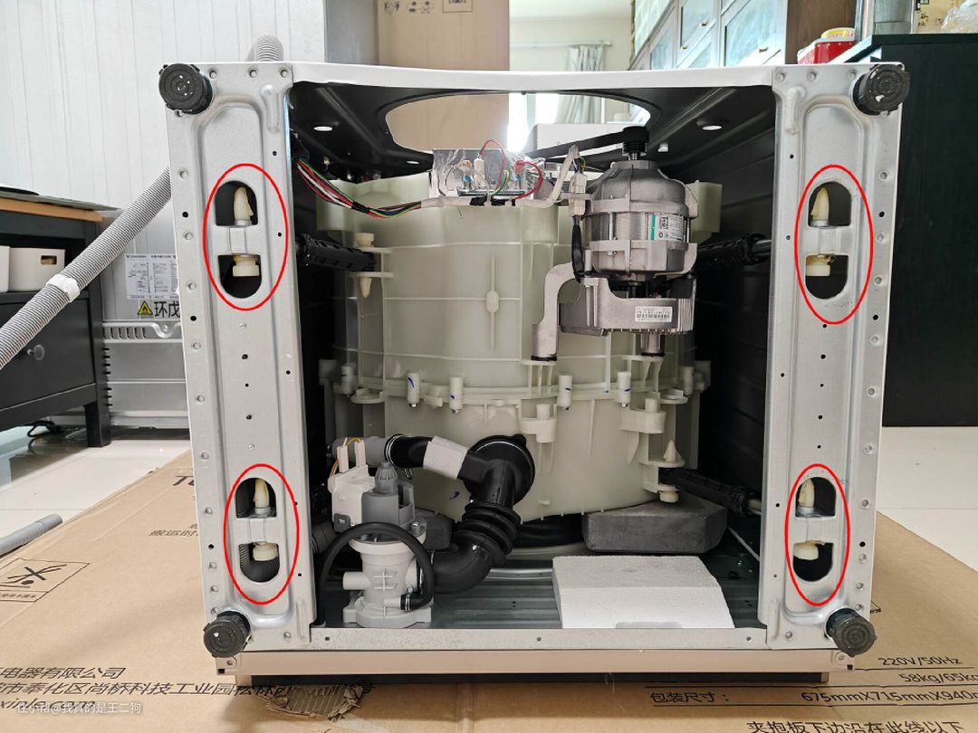 避震杆是洗衣机的重要组件,数量多少和优劣直接决定了使用的稳定性。如果洗衣机在脱水过程中出现大幅度的“跳舞”,很有可能就是避震结构设计不妥。这可能是避震杆质量不过关,或者避震杆使用的数量不够。Twinwash町渥T1W配备有四条避震杆,产品是来自专业厂家德国苏斯帕的产品,很多超级跑车减震系统也是采用德国苏斯帕。对不不少厂家仅有2条或者3天避震杆的设计,Twinwash町渥T1W用料还是很亮眼,产品整体细节上确实也更到位一些。