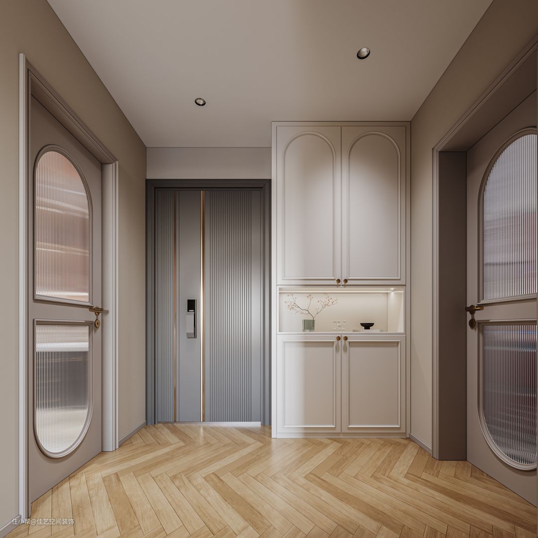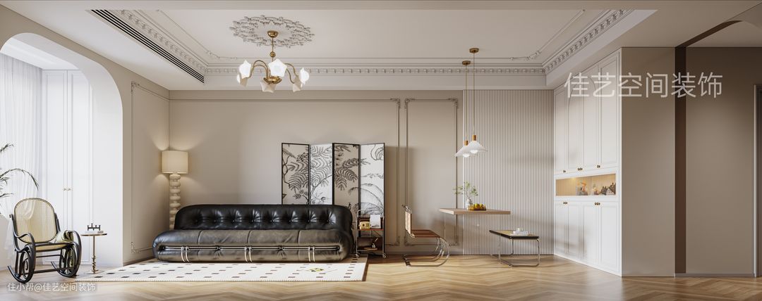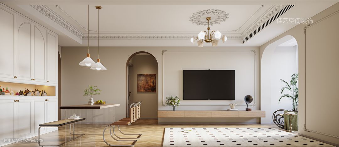 本案业主是一个追求时尚浪漫主义的小姐姐,虽然是一家三口居住,女主内心还住着一位高贵的小公主。法式装修就是有独特的高贵气质,其实是“花小钱、装豪宅”的神仙风格! 因为不管是小户型还是大房子,只要通 铺“人宇拼”地板,墙面贴上PU线条,再搭配拱门造型,硬装就能装出很好看的效果。