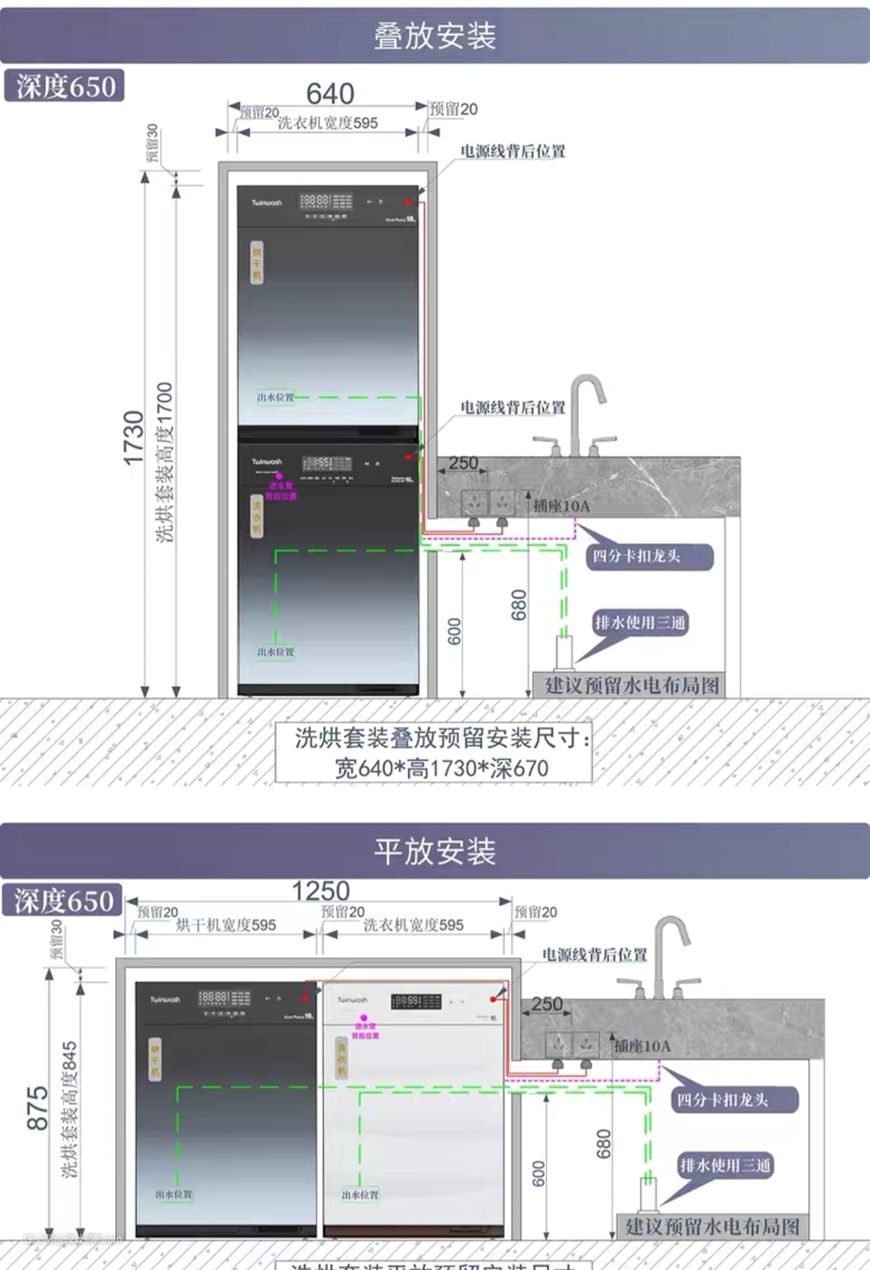 洗烘套装的安装还是有一些要注意的地方的,一般套装两种安装方式,平放和叠放;