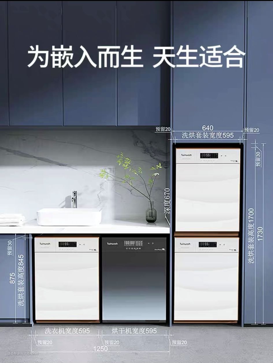 如果是做嵌入式打柜子,想要美观不凸出,那么柜子尺寸就要跟洗衣机和烘干机契合。