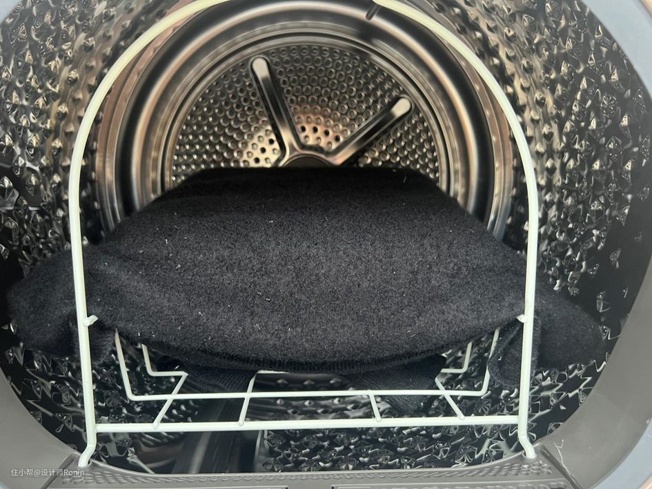 烘干机方面正反转功能和超大筒径能够把衣服烘得又蓬松又干又透,床上四件套也能烘得干不缠绕;