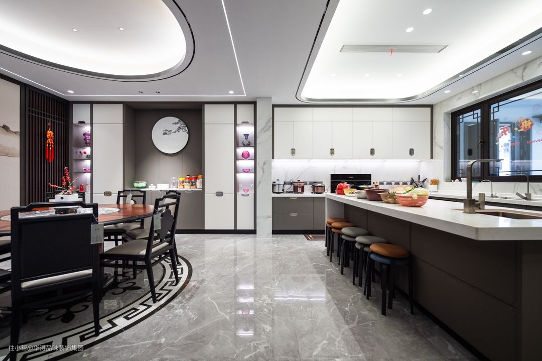 拥有怎样的厨房才会让平凡的生活变得格外的有仪式感?外形高颜值当然是首要的,灰白色的基调让整个开放式厨房的空间气质大增,中式料理、西式简餐、焙糕饼点在这里都可以一一实现; 洗切烹煮的合理动线安排、吊柜底灯友好设计,使厨房操作更轻松,不畏黑夜。