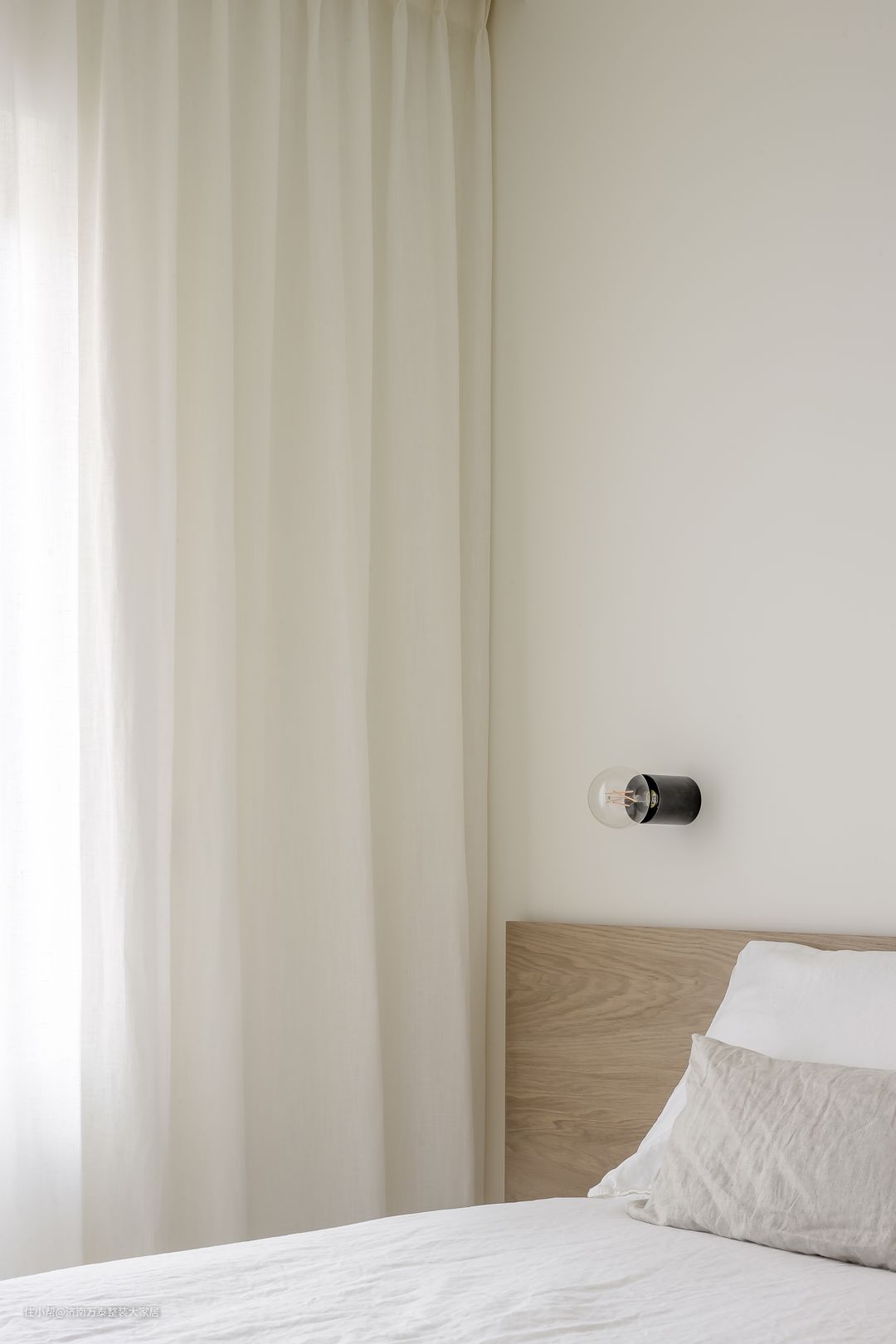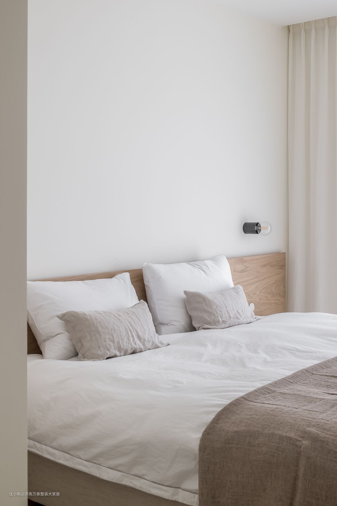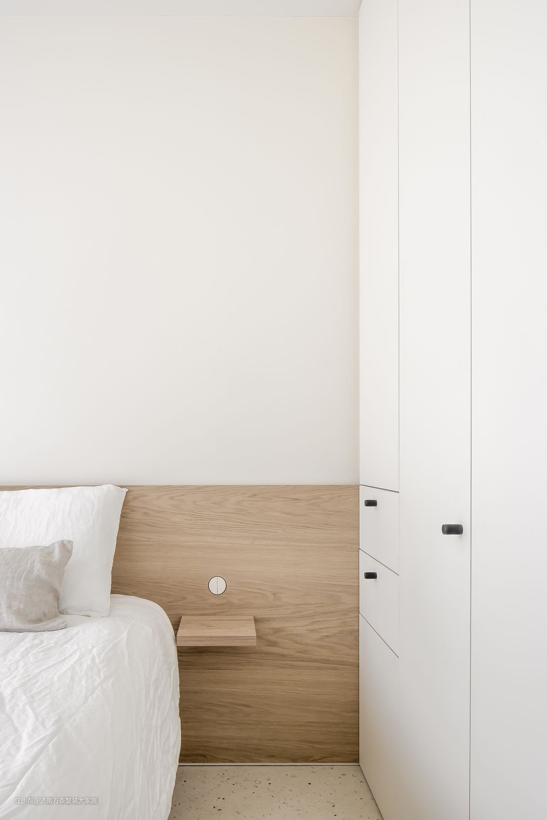 卧室同样选择浅色为主色调,极简的设计去除冗杂的装饰,柔软的床品搭配简约家具,保留最亲切温馨的一份依恋。