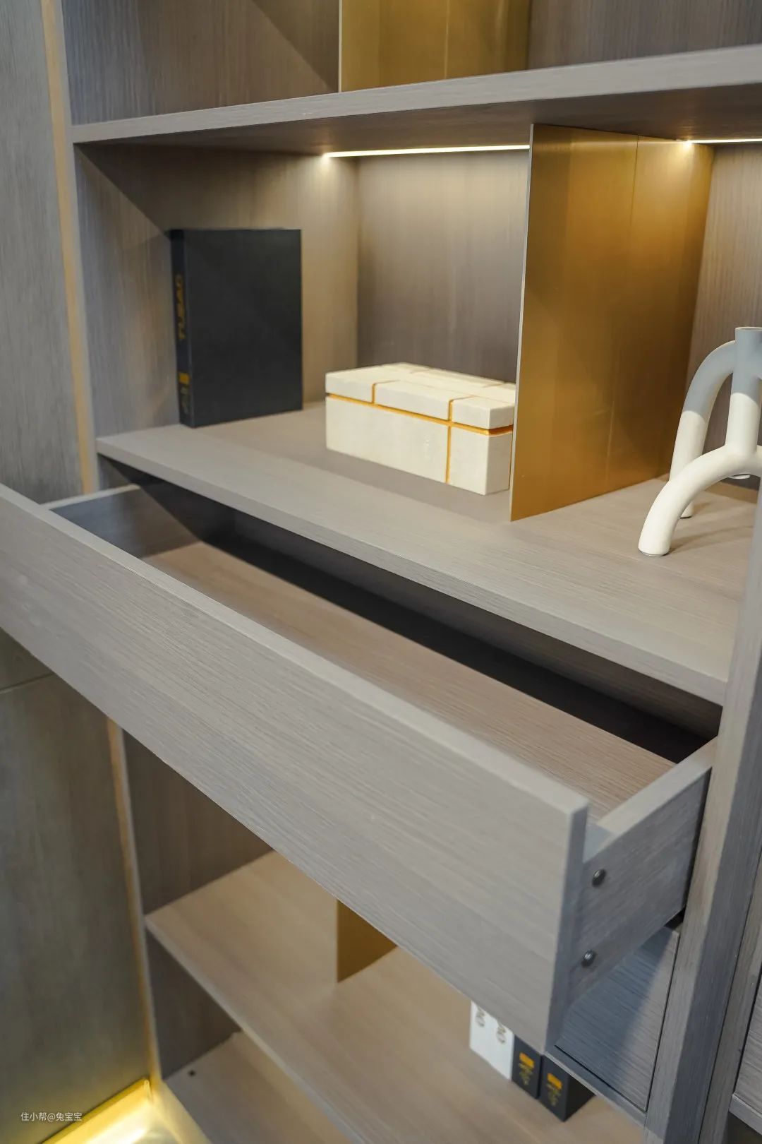 省心搭配:把手挑选不当很可能会影响整个柜子的颜值,免拉手设计无需把手,也就省去了这个烦恼。