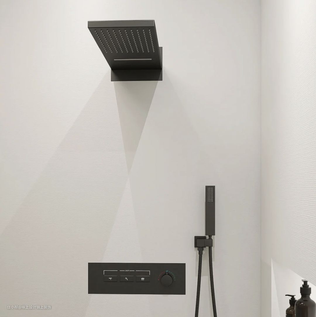 5.花洒记得买带空气注入的,颜色选枪色或者金属色,不要买深色的花洒。极简风格最适合的是暗藏花洒