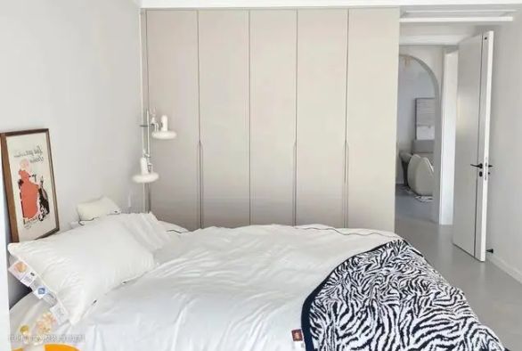 ▫️床头背景墙刷了奶白色的乳胶漆,搭配白色床品