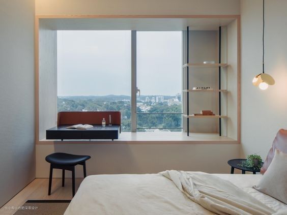一块简单的抽板即可同时满足办公+梳妆,对于中小户型来说,具有极高的借鉴意义,咱们还能将其利用在其他的地方,以飘窗为例,咱们可以做出不同的样式: