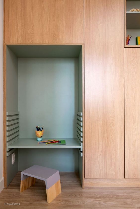 同样的道理,抽板设书桌也能放在柜内,只不过具体样式和尺寸大小,可以根据个人的需求稍作调整,咱们要学会灵活利用。