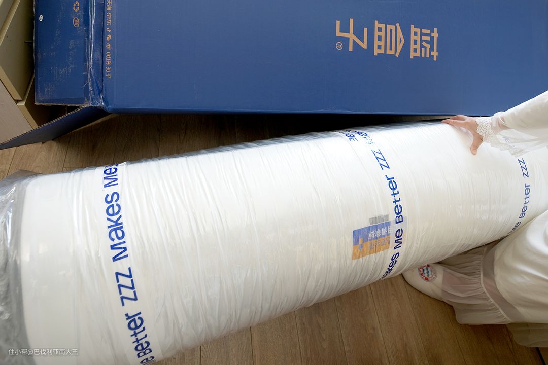 而蓝盒子床垫完全没有这方面的担忧,外盒尺寸仅45cm*45cm*160cm,轻松进入电梯。打开盒子之后又是很有创意的卷包结构,非常节省空间!