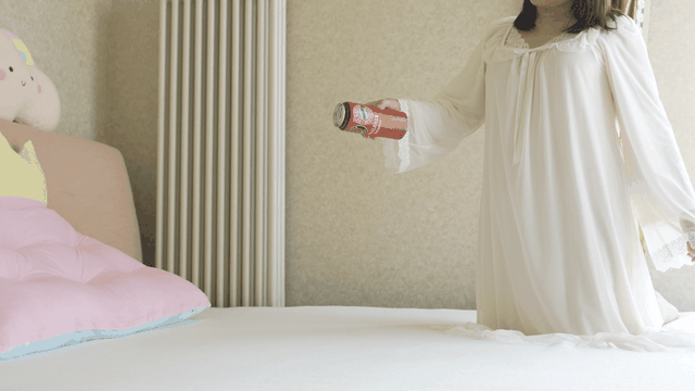 我把蓝盒子放在床架上,用它自带的划刀轻轻划开后,60秒就可以还原一个硕大的床垫!
